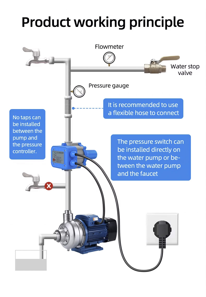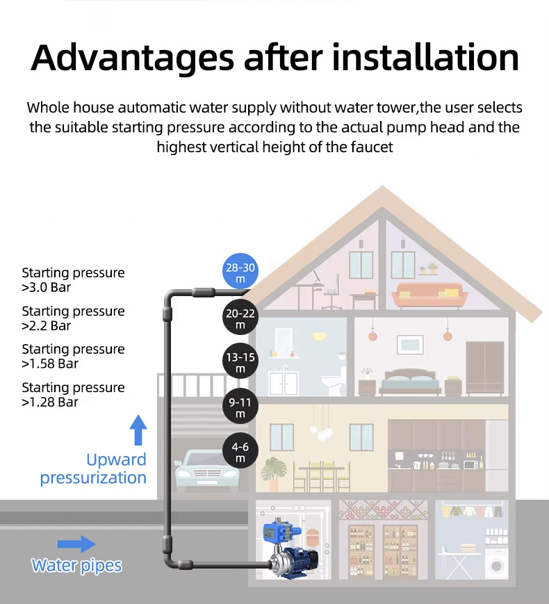 کنترل کننده پمپ اتوماتیک کنترل کننده فشار الکترونیکی پمپ آب می تواند جایگزین تاسیسات پیچیده پمپ آب اتوماتیک شود. دارای ویژگی های عملکرد پایدار، نگهداری کم و طول عمر طولانی است.