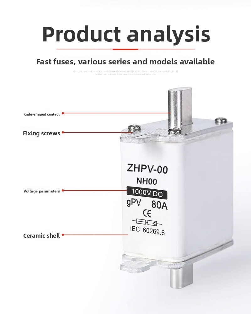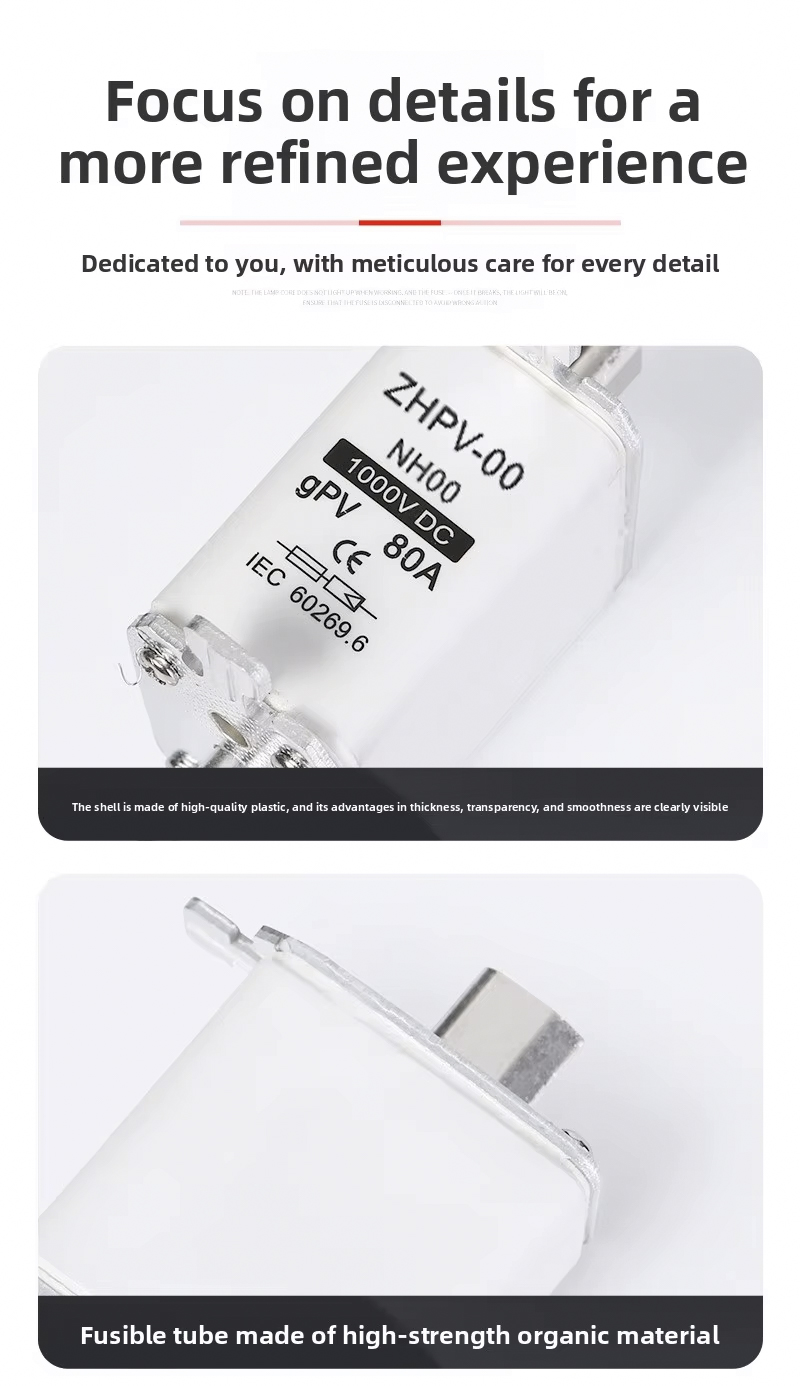 فیوز چاقوی فتوولتائیک کم ولتاژ NH00-1000V IEC Plastic 80A 6ka Breaking Capacity برای حفاظت مدار کارآمد و قابل اعتماد در سیستم های فتوولتائیک و سایر کاربردهای ولتاژ پایین طراحی شده است. این فیوز با کیفیت بالا تا 1000 ولت کار می کند، با ظرفیت شکست قوی 6ka، از قطع ایمن در صورت اضافه بار یا اتصال کوتاه اطمینان حاصل می کند. جریان نامی 80A آن را برای نصب های مختلف PV و پانل های کنترل صنعتی مناسب می کند.